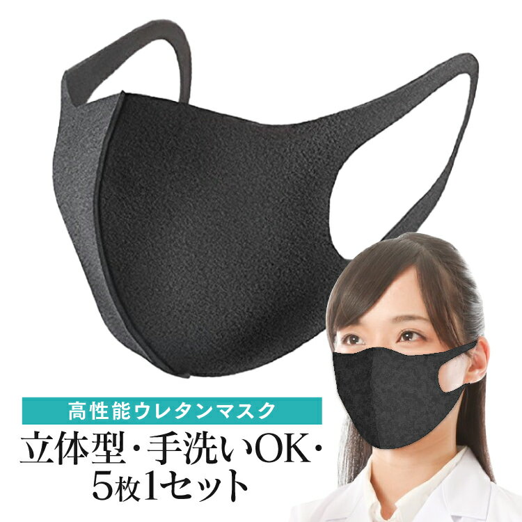 【商品名】 洗える! ウレタンマスク 5枚入り 【素材】 ポリウレタン 【カラー】 ブラック 【内容量】 5枚(梱包装) 【商品詳細】 ・洗って何度も(3回洗っても効果はそのまま)使えるマスクなので経済的 ・洗濯方法は中性洗剤・ぬるま湯で手洗い、室内陰干し ・飛沫感染予防、風邪予防、ウィルス飛沫の皮膚直接付着予防、花粉予防を主な目的としたマスクです。