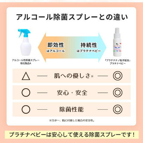 【商品名】プラチナベビー 除菌スプレー 【成分】白金、アスコルビン酸、クエン酸、精製水 【内容量】50ml 【商品サイズ】直径約3cm×高さ約12cm 【セット内容】キャップありスプレー容器 【ご使用方法】軽く振って、ご使用ください 【ご使用上の注意】 傷やはれもの湿疹などの異常があるときは使用しない 乳幼児の手の届かないところに保管する 直射日光を避けて保管すること 他の容器に入れ替えない 【製造国】日本 ※商品のデザイン、仕様、容器の外観は 予告なく変更する場合がありますのでご了承ください。